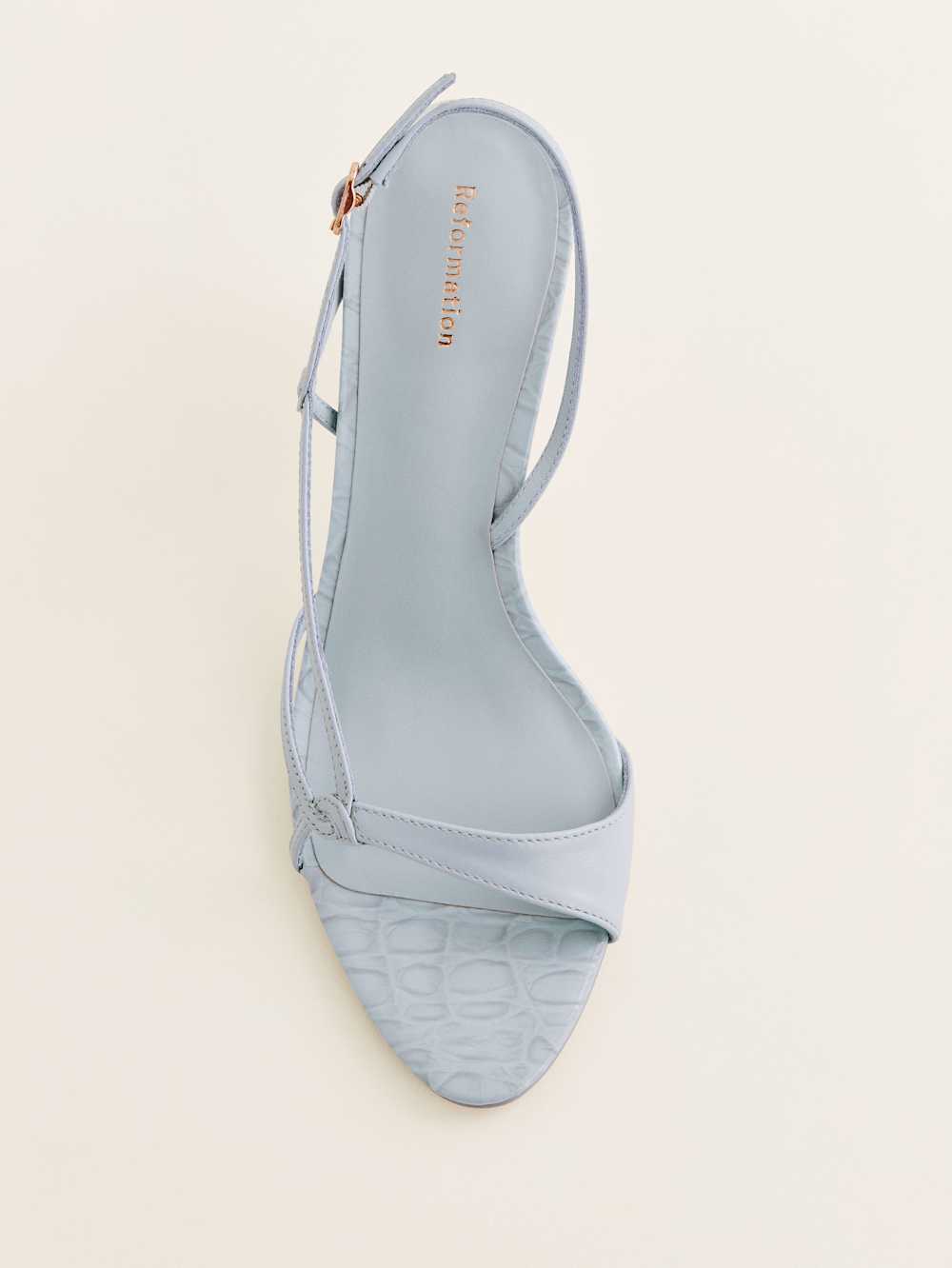 Wear me. Shop the Nino Slingback Heeled Sandal from Reformation, a heeled sandal with a slim round toe, a strappy upper, and an adjustable ankle strap.