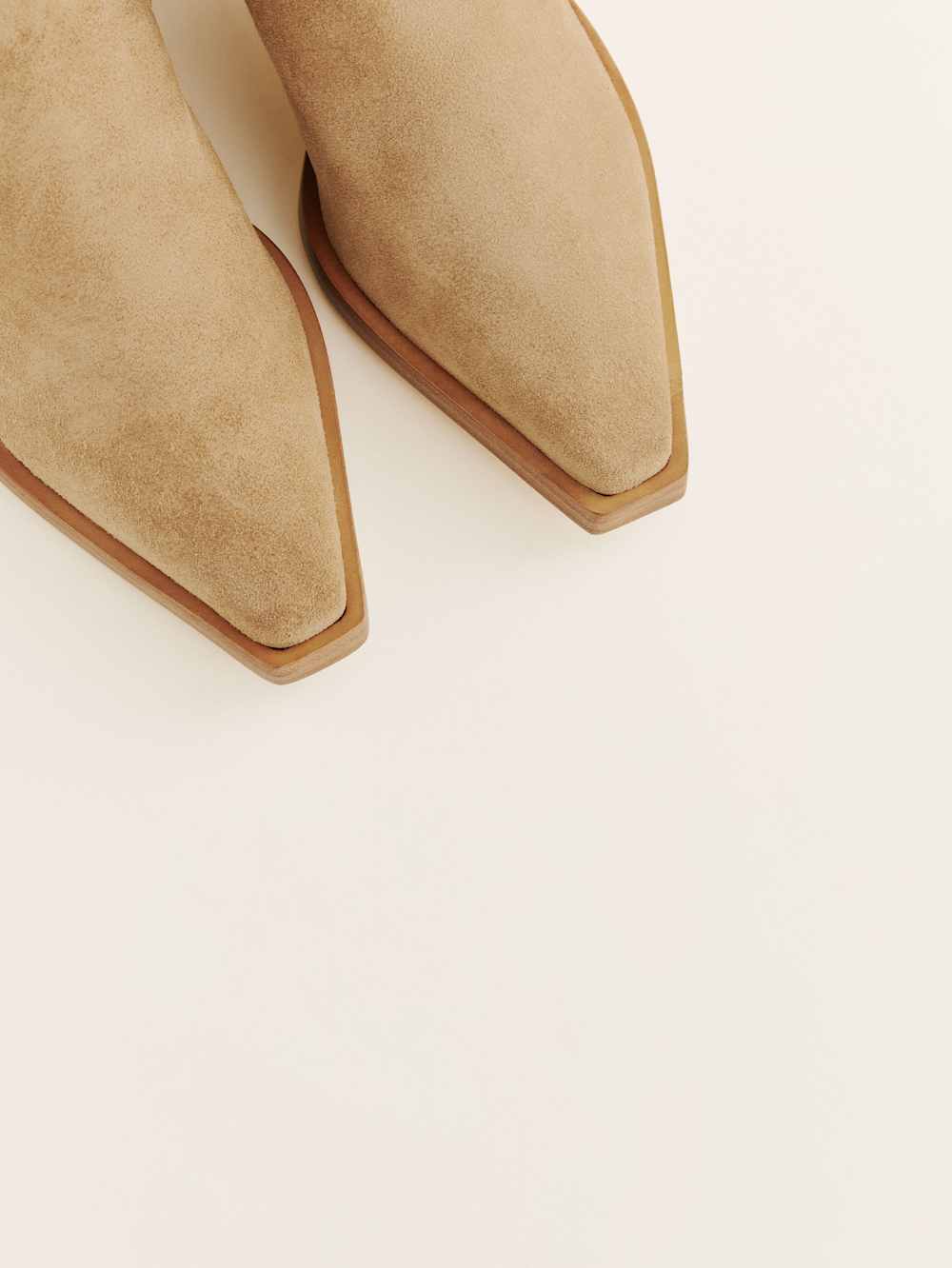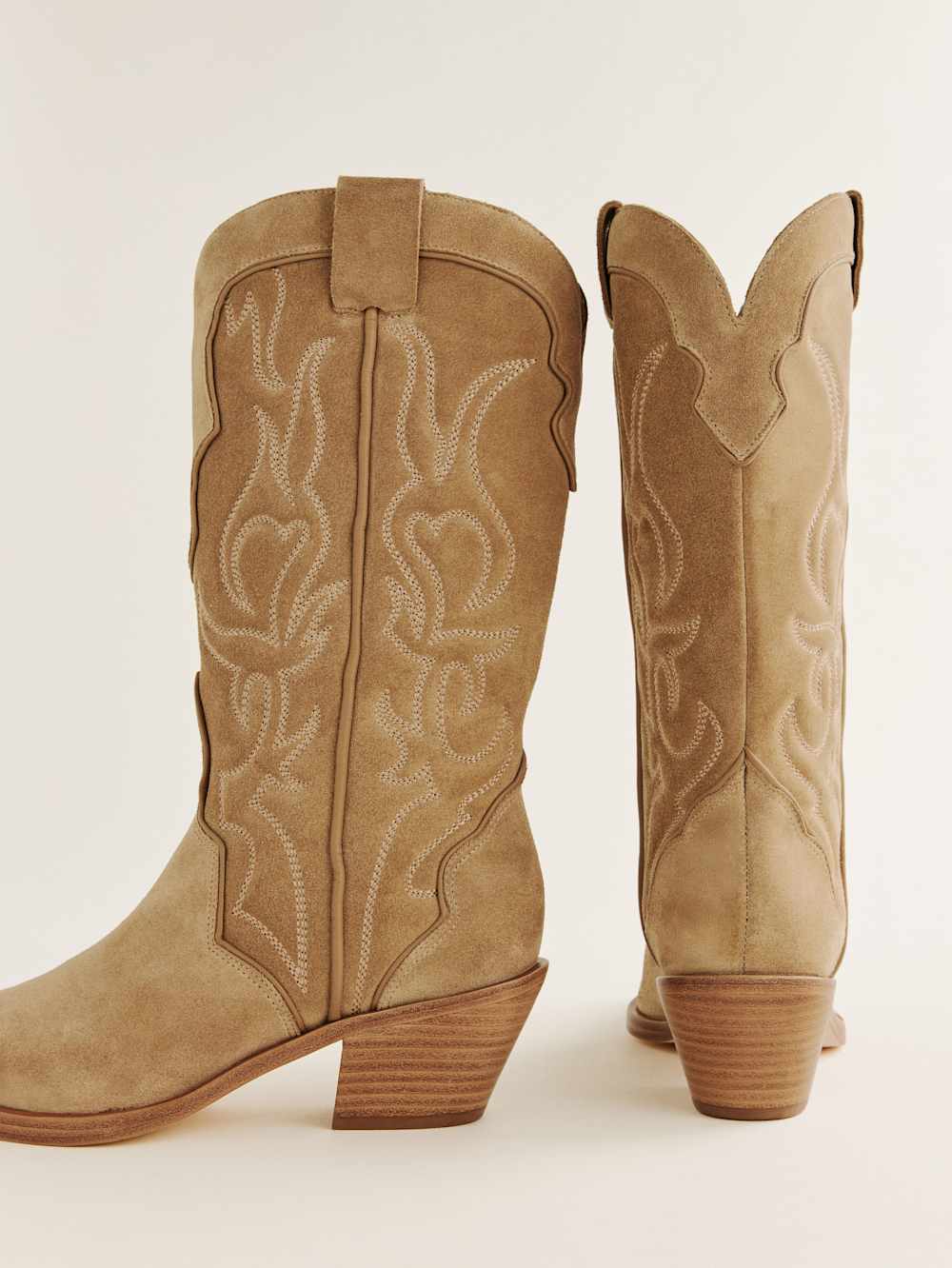 Save a horse. And a lot of water. Shop the Olive Western Boot from Reformation, is a mid-calf western boot with authentic western piping.