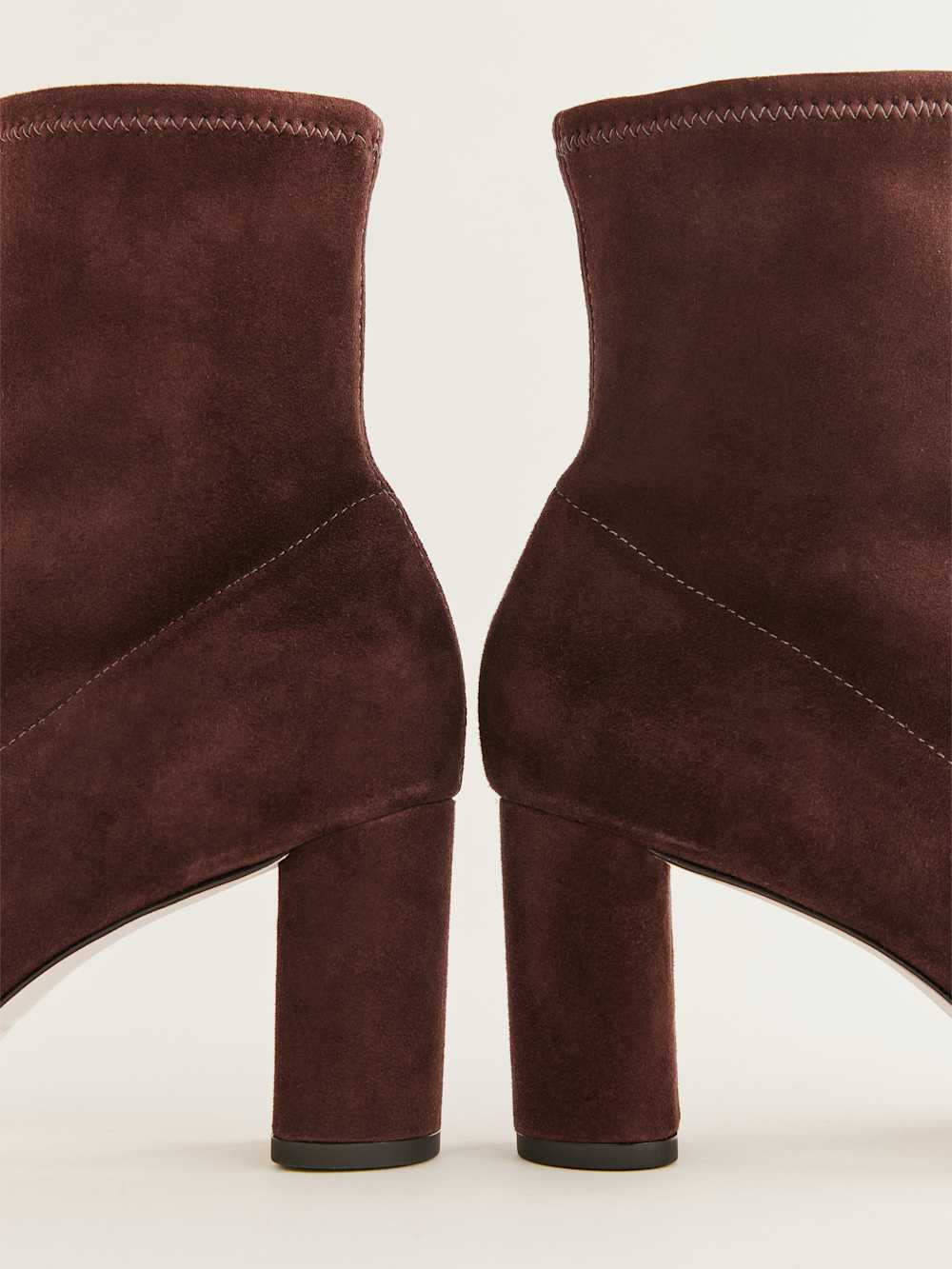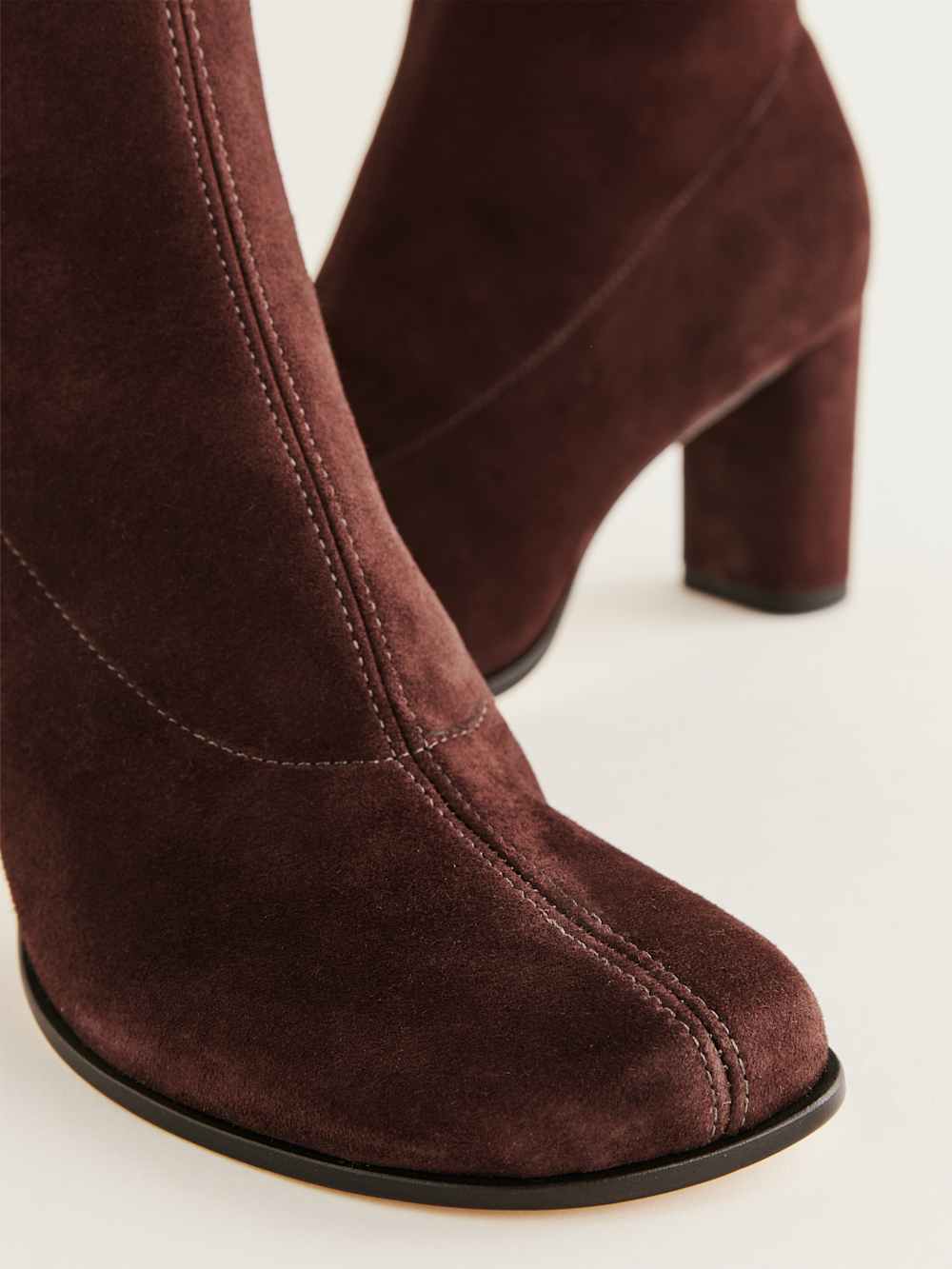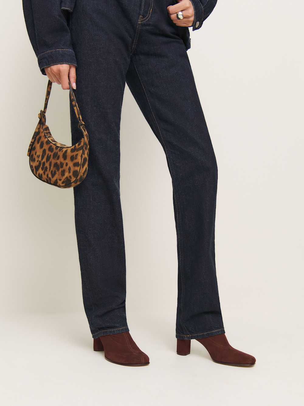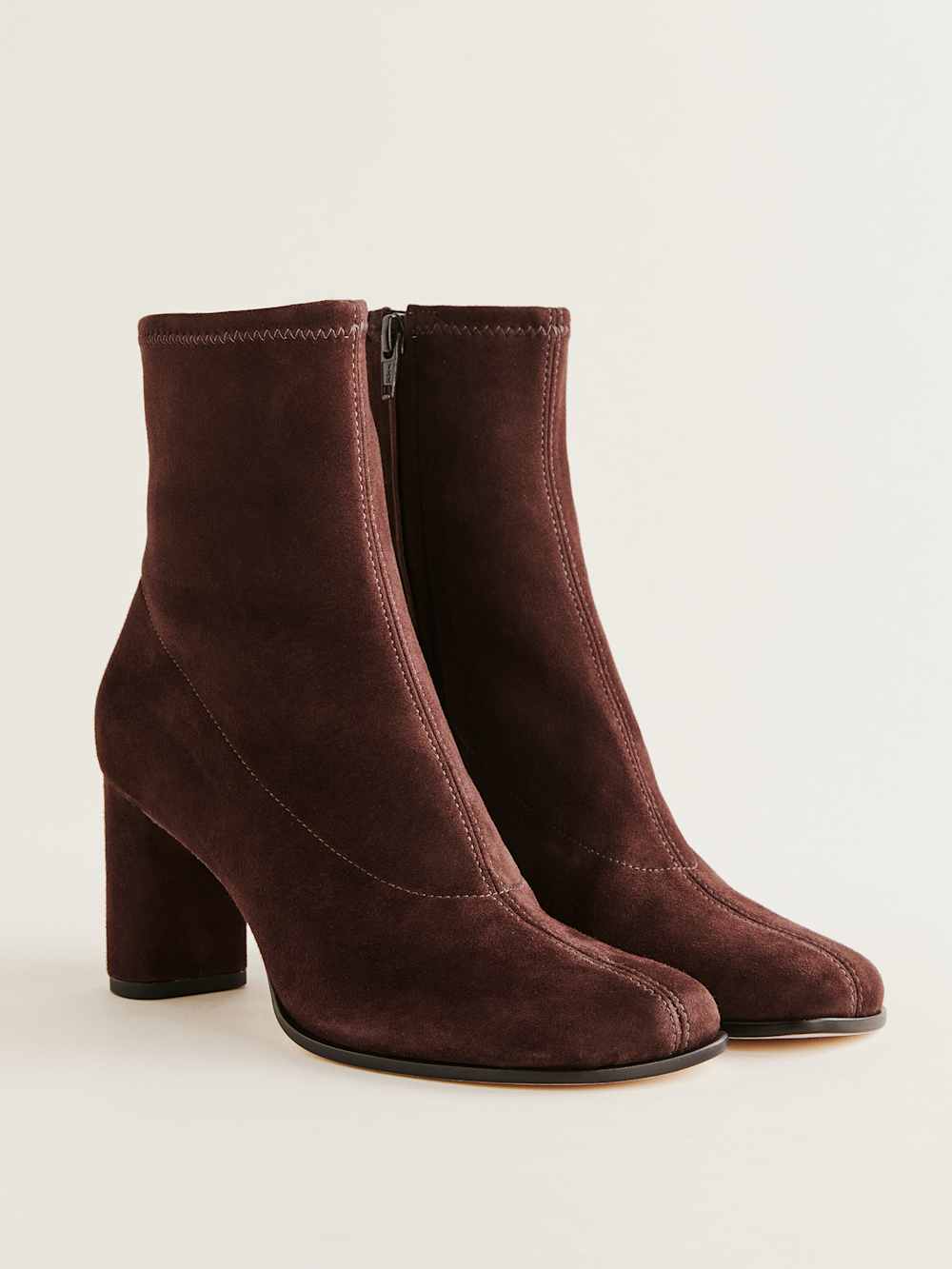Wear the boots. Shop the Presley Ankle Boot from Reformation, a stretch leather boot with a round toe, block heel, and seam detailing.