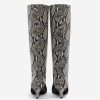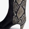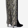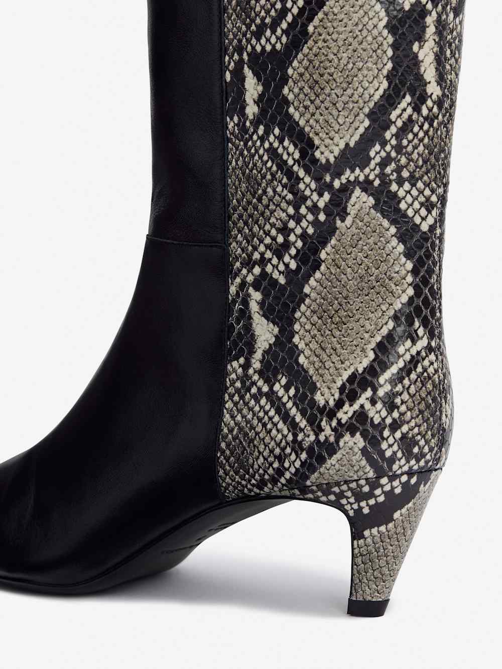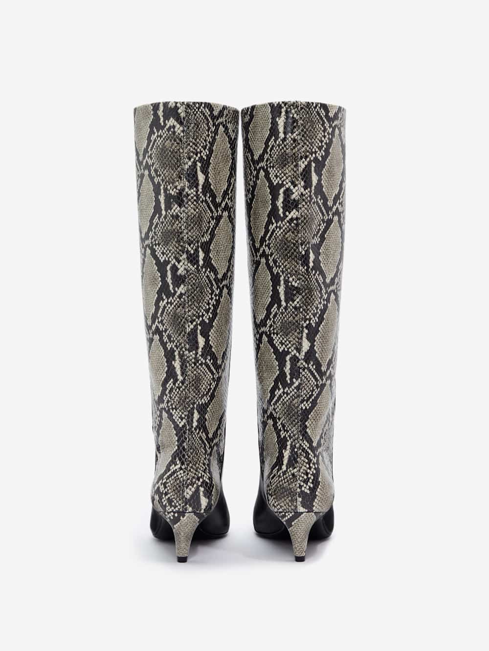 Upper is made from an embossed and printed snake pattern on cow leather. Spot clean.