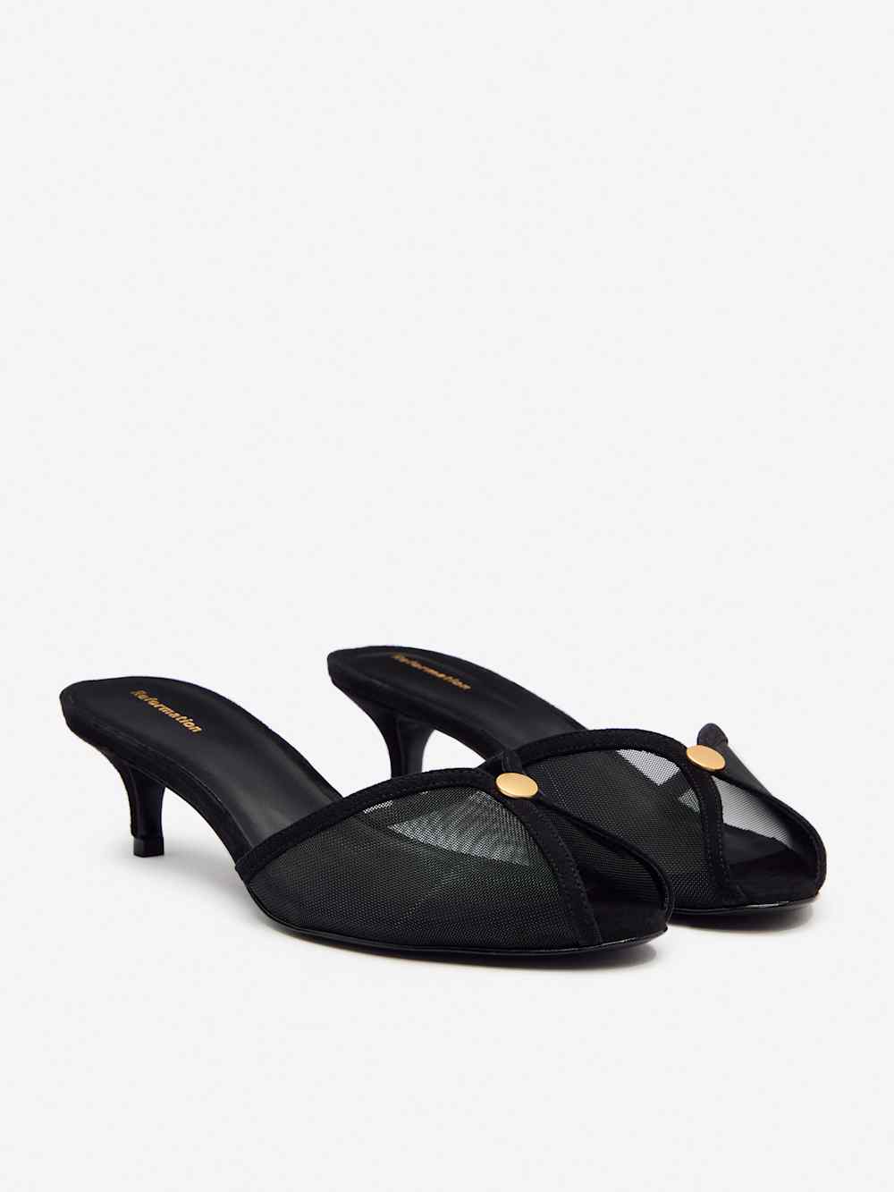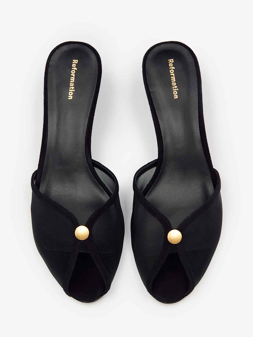 Detail oriented. Shop the Wisdom Heeled Sandal from Reformation, a heeled sandal with a peep toe and mesh details.